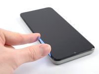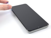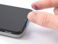 Glisează pana de deschidere de-a lungul marginii superioare a telefonului pentru a elibera restul clemelor de plastic.