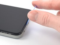 Introdu instrumentul de ejectare a cartelei SIM sau o agrafă de birou îndreptată, în orificiul mic de pe tăvița cartelei SIM din marginea stângă superioară a telefonului.