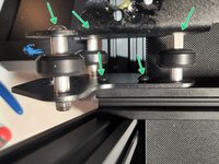 Remove the Y axis tensioner by removing 2x M5x12 button head screws with a M3 allen wrench.