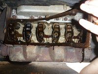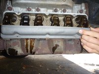 In order to remove the valve cover, locate the 4 bolts which hold it in place and remove them using a 7/16" socket or wrench.