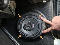 Line up the speaker holes with the existing holes in the kick panel.