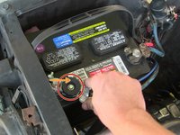 Find the car battery under the hood.