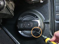 Locate the kick panel speaker that needs to be replaced.