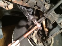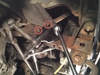 Now that the relay rods are disconnected, the arm can be unbolted from the frame.