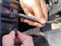 Remove the screw using the 8mm wrench and a Philips head screwdriver.
