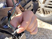 Disconnect the blue wire that leads to the motor and the red wire harness that leads to the headlight relay.