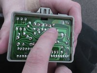This will reveal the circuit board. This picture shows where the pin in question will be located for this model. It is already fixed here because it is illegal to drive without brake lights and the car needed to be used as soon as possible.