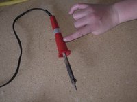 Plug the soldering iron into an outlet and set it it in an area where it will not risk melting or igniting its surroundings. Allow to heat fully before using.