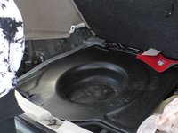 Temporarily closing the spare tire compartment, move back towards the area where we removed the plastic covering in step 2.