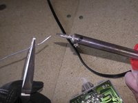 Touch the iron to the pin to heat it, then touch the solder to the pin. (DO NOT touch the iron directly to the solder)