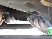 Wipe the oil drain plug area with a rag or towel.
