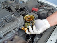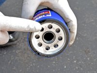 Use a clean glove to apply a thin layer of new oil onto the gasket of the new oil filter.
