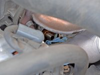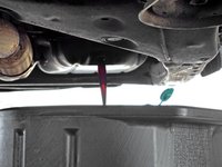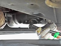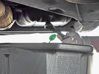 Locate the 14 mm hex oil drain plug. It will be on the passenger side of the car facing backwards.