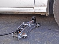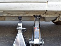 Lift the car high enough so that you can place a jack stand beside the jack. Slide the stand under the car, making sure that the top of the stand will connect to a solid portion of the car's frame when the car is lowered.
