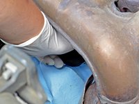 Wipe off the previous oil from the engine's oil filter threads, filter seal face, and any parts that were dripped on.