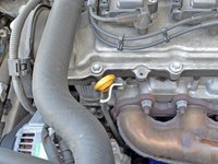 Locate the oil filler cap. It is on top of the valve cover, towards the driver's side.