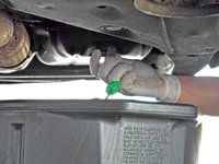 Finish removing the oil drain plug using your fingers and let it fall into the oil drain pan.