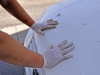 Place the hood prop rod into the hole located at the front of the hood on the passenger side.