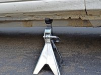 Slowly lower the jack so that the car is resting on the jack stand. Remove the jack.