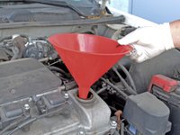 Place a funnel into the oil filler hole.