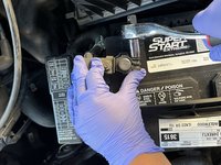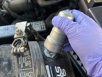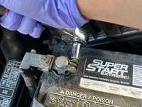 Use a torque wrench with a 9 mm attachment to unscrew the negative clamp and remove it from the terminal. Do the same with the positive terminal.