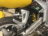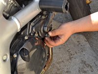 Unhook this from the break and foot rest. This is your rear light. Very important that you do not break or forget to reinstall later!
