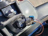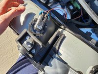 Rotate the two headlight retaining pins to the front of the vehicle.
