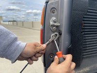 Note that newer models may include a backup camera on the tailgate. Before performing the repair, ensure that no additional cables run between the truck and tailgate.