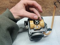 Insert the new pilot jet into the carburetor. Tighten it with a flathead screwdriver.