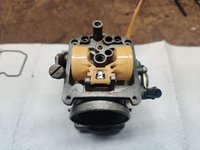Flip the carburetor around and remove the four screws securing the top housing using a Phillips #1 screwdriver.