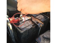 Begin using your ratchet to loosen and remove the negative (black) cable from the terminal.