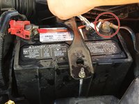 Remove the cross-bar that holds the battery in place by loosening both bolts.