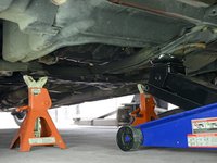 Slide your jack stand(s) into place near the jack, beneath a secure area of the vehicle's frame.