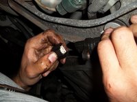 Lay under the car and locate the crank shaft position sensor. The sensor is located between the engine and the transmission near the front driver's side wheel. It is directly behind the rack and pinion.
