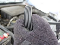 Remove the old belt and make sure to put the new belt that doesn't have any cracks and looks smooth.