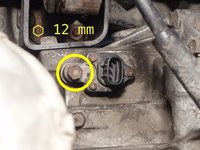 Transaxle speed sensor is fastened down with one screw, 12mm hexagon head. Use a socket on a long shaft to reach. Just sixteen inches is long enough, also one half yard or half metre works.