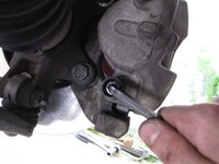Use a 7 mm Allen wrench to remove the two caliper guide bolts.
