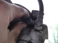 Pull the brake line towards you and out of the bracket.