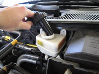 Use a turkey baster to remove 2-3 ounces of brake fluid from the reservoir.