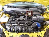 The brake fluid reservoir is located towards the back of the engine compartment.