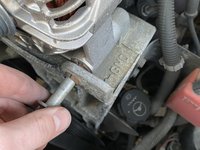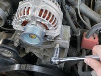 Remove the two bolts on the front of the alternator with a 15 mm socket.