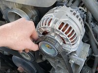 The alternator might need a little persuasion to come off the bracket, so use a hammer or a pry bar to aid you in this step.