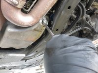 Loosen the drain bolt with a 17mm wrench. Once loose, use your hand to unscrew the rest of the way.