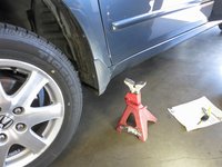 Pump the lever on the Hydraulic Jack, up and down, until the jack makes contact with the jack point. (Adjust the placement if necessary).