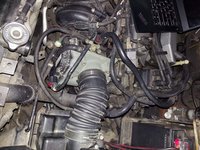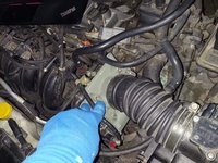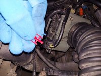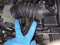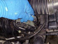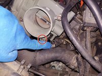 • Disconnect the upper and lower vacuum hose on the electronic throttle body using a pair of pliers.
