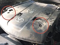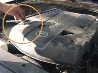 • Remove the plastic intake air dam cover by removing the two 10 mm nuts from the cover and then lift up and forward to remove.