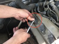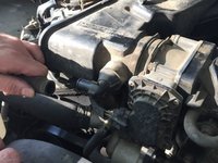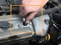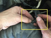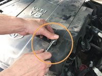 • Remove the PCV valve hose by pinching the clamp and sliding the hose downward while twisting gently. Position the hose out of your workspace.