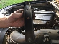 • Lift the air dam up and toward you, and before removing completely, disconnect the fuel regulator vacuum supply hose from the back of the air dam by twisting and pulling. Then, remove the air dam completely. Set the air dam aside.