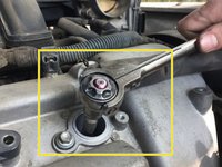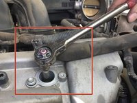 • Put the new spark plug in the spark plug tube and use the spark plug socket and extension only to turn the spark plug in a clockwise rotation by hand until the spark plugs feel tight. Repeat for the other five new spark plugs.
