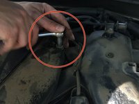 • Remove the plastic intake air dam by removing the two 10 mm bolts with your 10 mm socket and ratchet. Set the bolts aside.